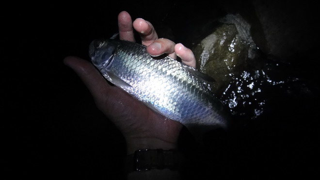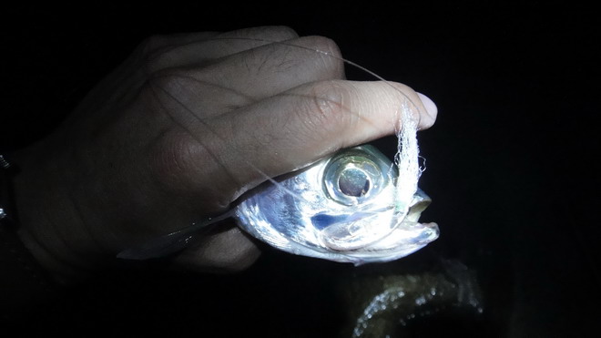 還好!還好!入夜之後幾隻海鰱來捧場,但卻越釣越小隻