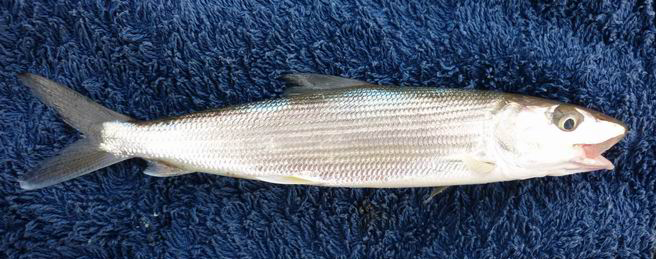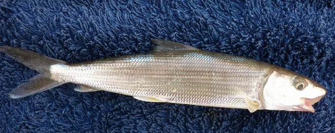 傳來的縮小圖只看到魚身中段,看起來像虱目魚