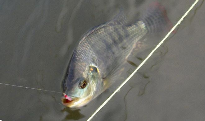 拋了一個多小時,音訊全無,拿出一隻從來不曾中魚打算報廢的毛鉤