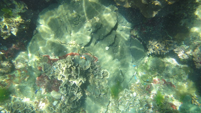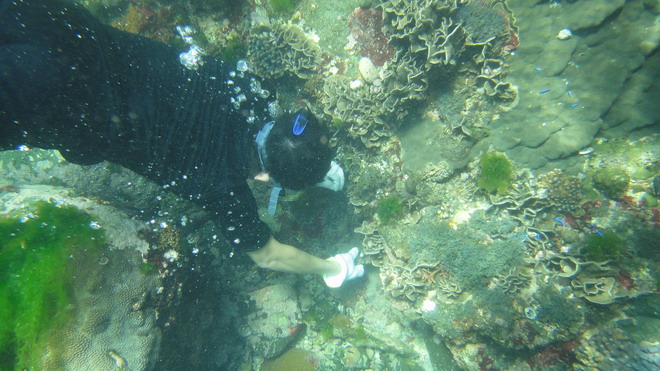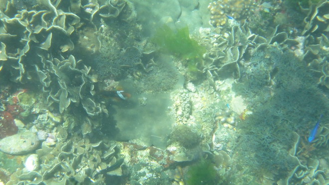 由於小弟水性不太好,由水中蛟龍阿翔代勞,照片是他安置兩塊手指珊瑚