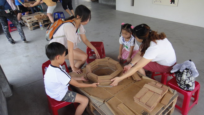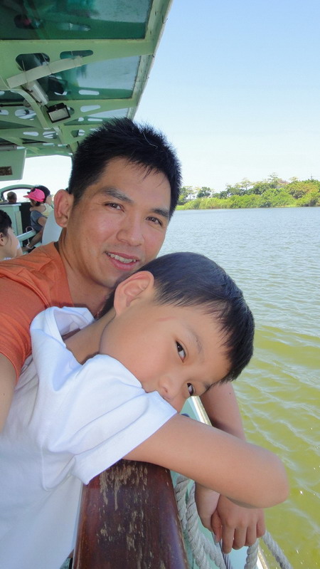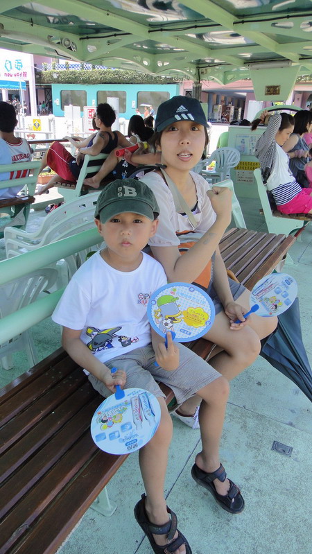 買了船票,一家人搭船去看傳統藝術....