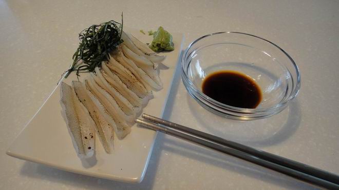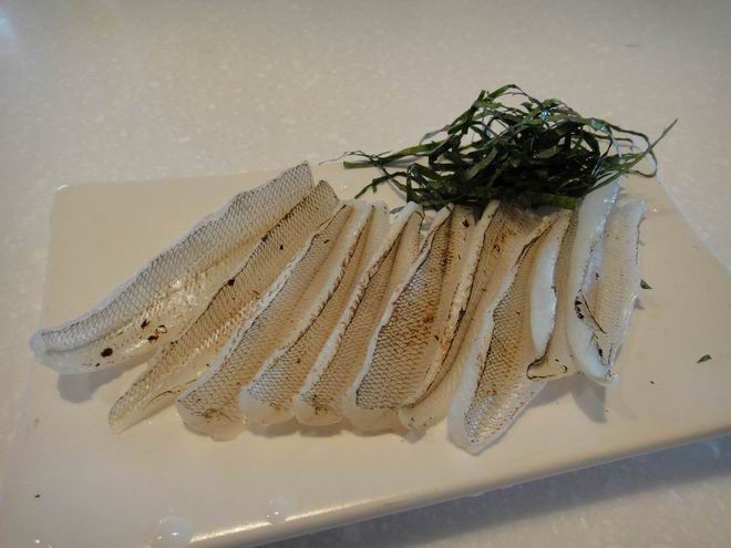 找了5條稍微大一點的做炙燒生魚片,肉質細,味道甜,但還不習慣這種清淡的口味...