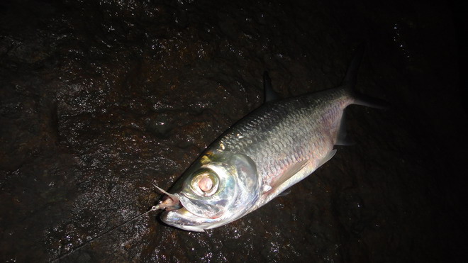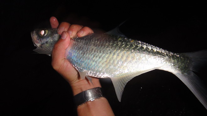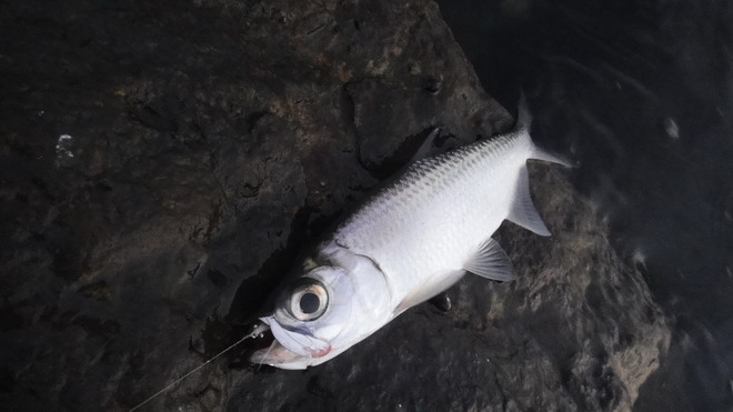 今天的海鰱咬況很好,天都還沒暗就很捧場,第一隻上岸以前,海鰱翻咬了十多次...