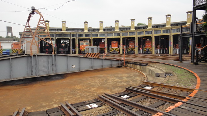 這次去是上班時間,所以有車在修,整個園區工人跟遊客穿插走來走去而且有很大聲的火車引擎聲,還有一股很濃的柴油味,後來還有一節車頭進轉向器去分軌,也拍了動態影片照片拍很多,還在整理中,