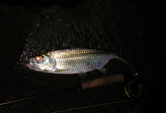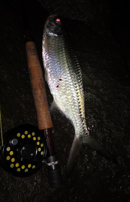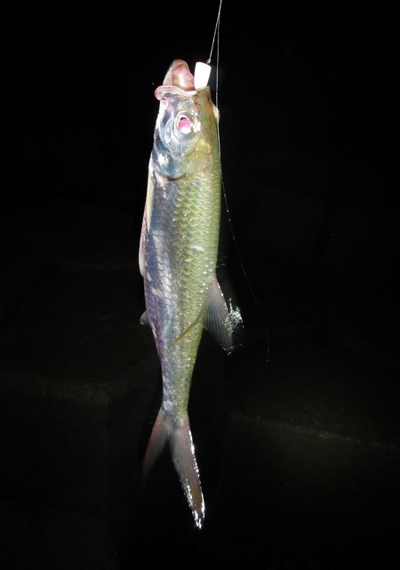 裝上頭燈一照...庵娘喂!...大群海鰱就在我腳下巡曳...卻理都不理我的軟蟲一下