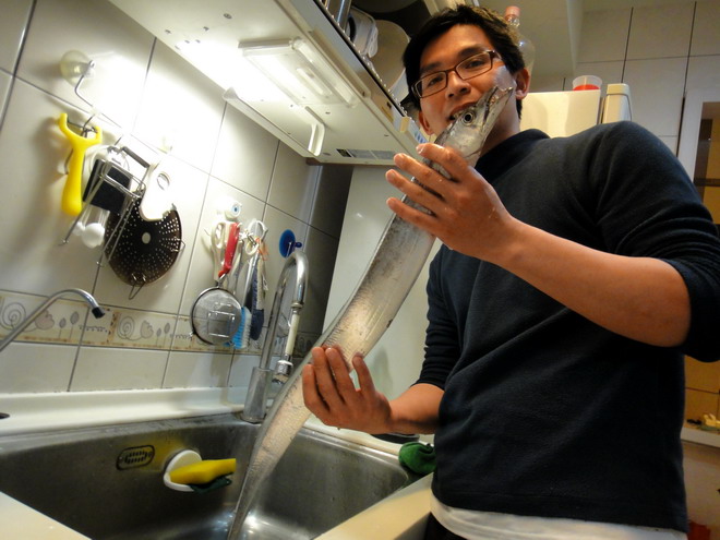 在冷冽的寒風中,狂拋了一個晚上,只有一隻...以往都會在季初中一隻大白帶魚當起頭,在季末再中一隻大白帶魚結尾,中間一律只有油帶今年跳過季初的白帶跟中間的油帶...直接收尾...