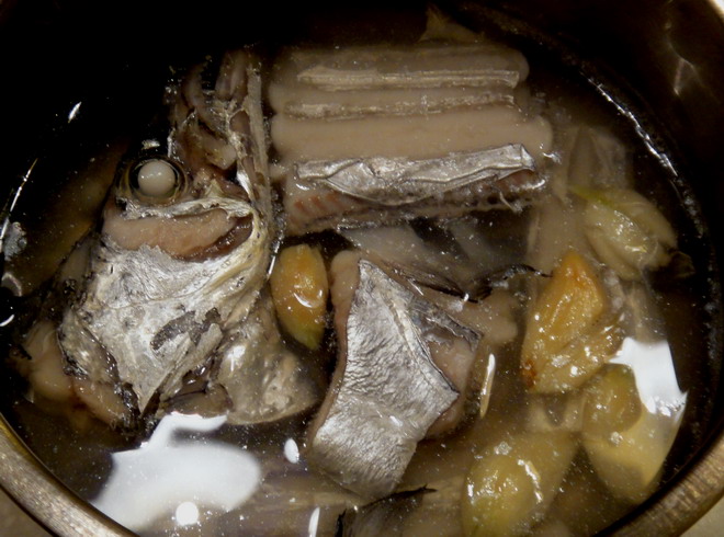 另一半煮蒜頭湯...這湯好香,我的最愛...
