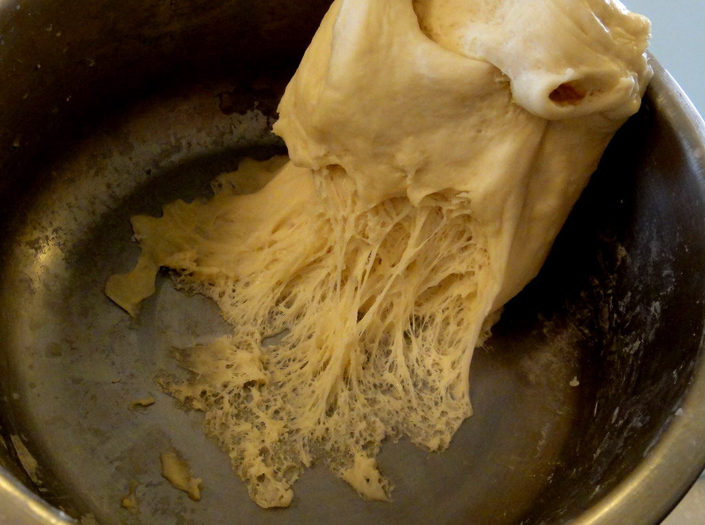 我覺得看到當第一次發酵完成,把麵團拉開看到的許多細小孔洞也很令人感動