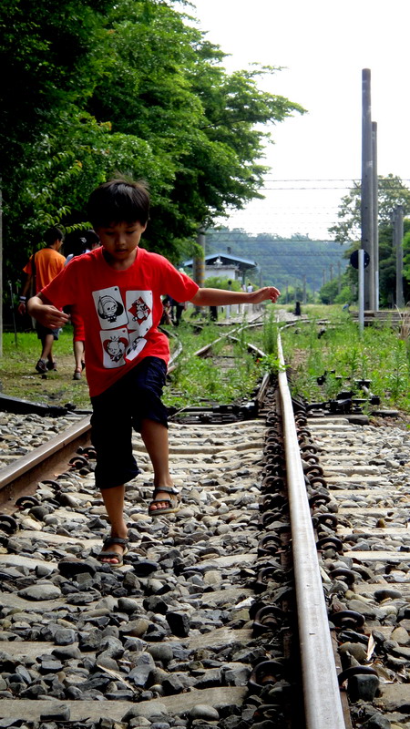 車站對面是文化園區,才一進來就看到兩位正妹在開火車