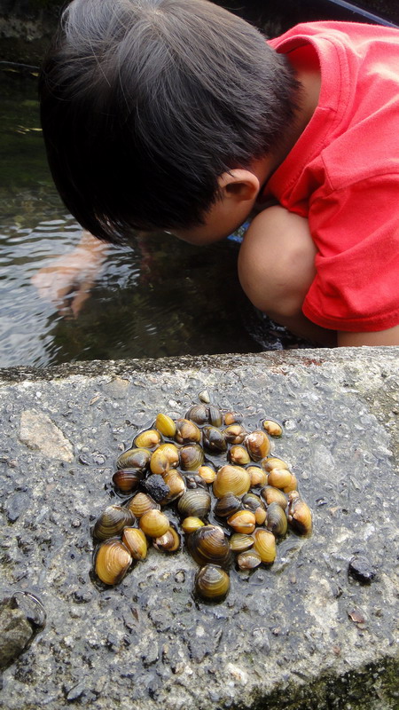 小寶說,它找到寶物...還真的是寶物,能找到也生蜆就不簡單,還找到河蚌...