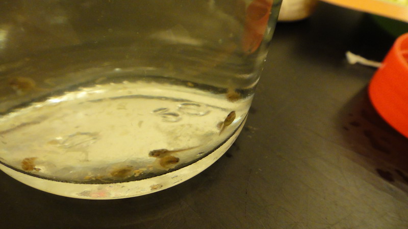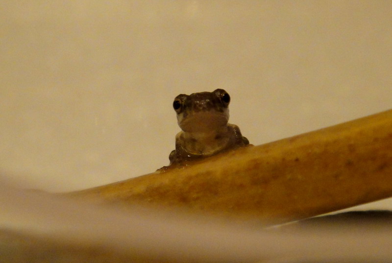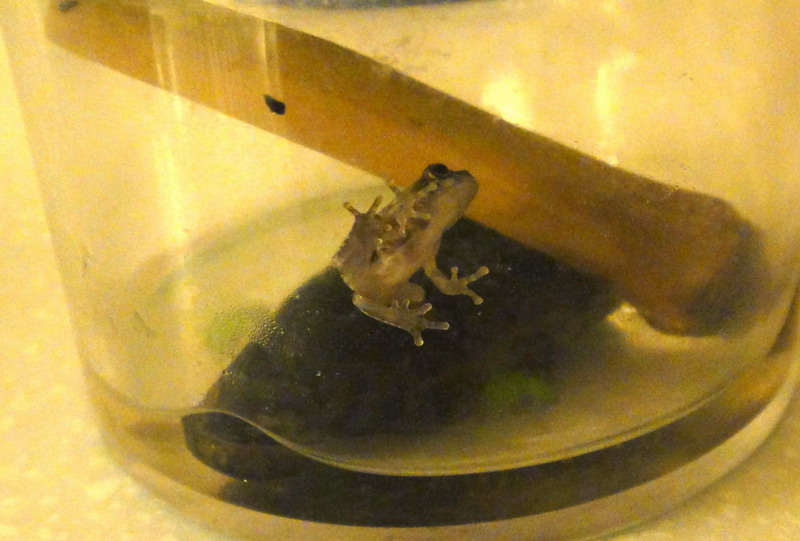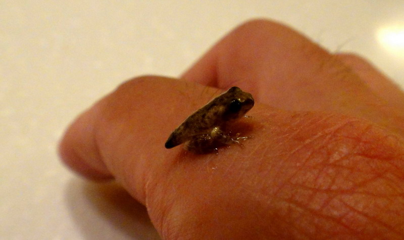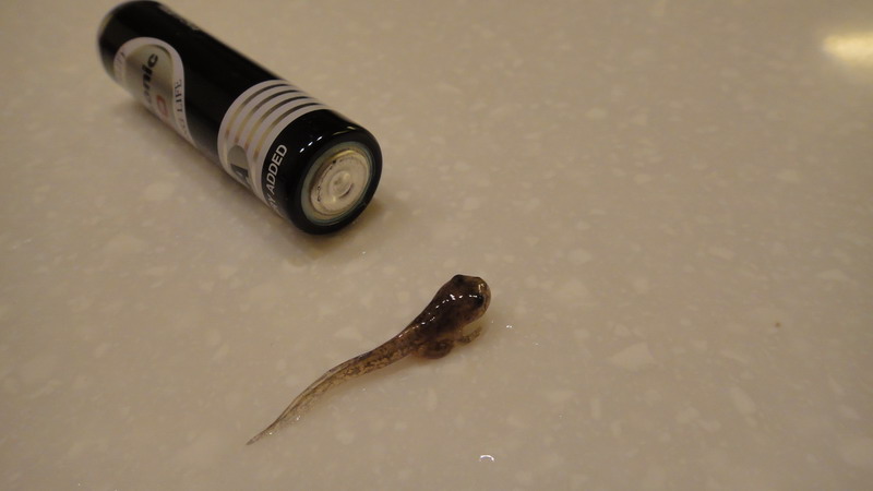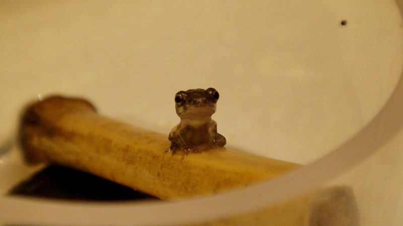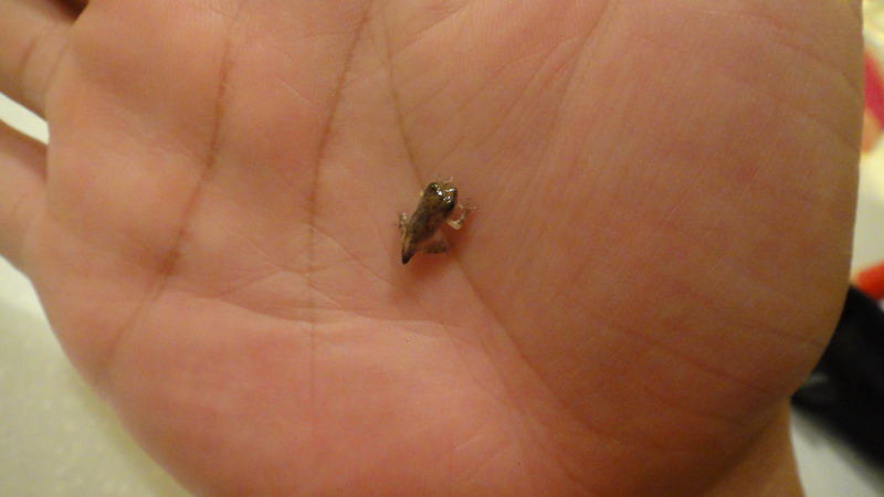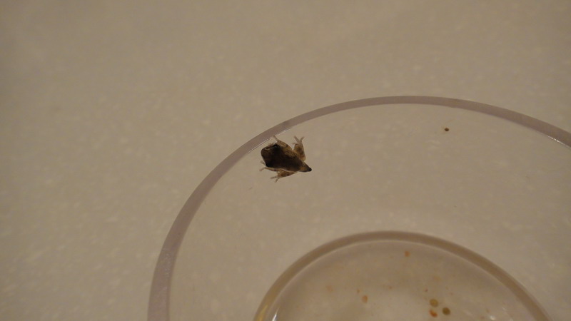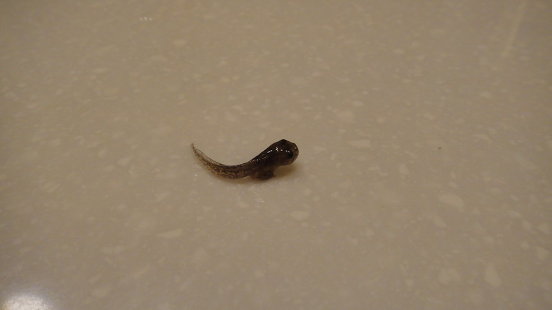 5/26 這隻的最後身影,由於低估它爬行的能力,隔天發現它已經消失在我家裡,三天後在地板上找到蝌蚪乾