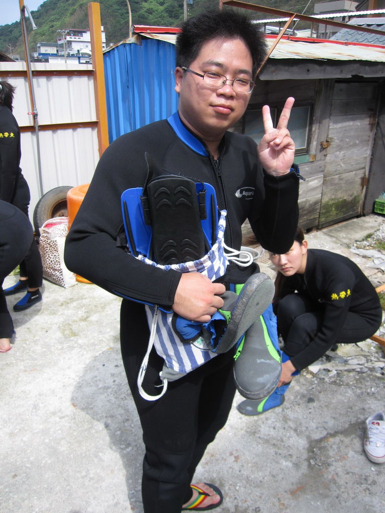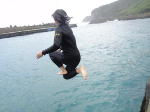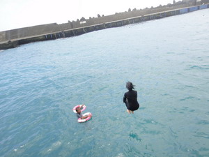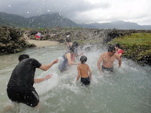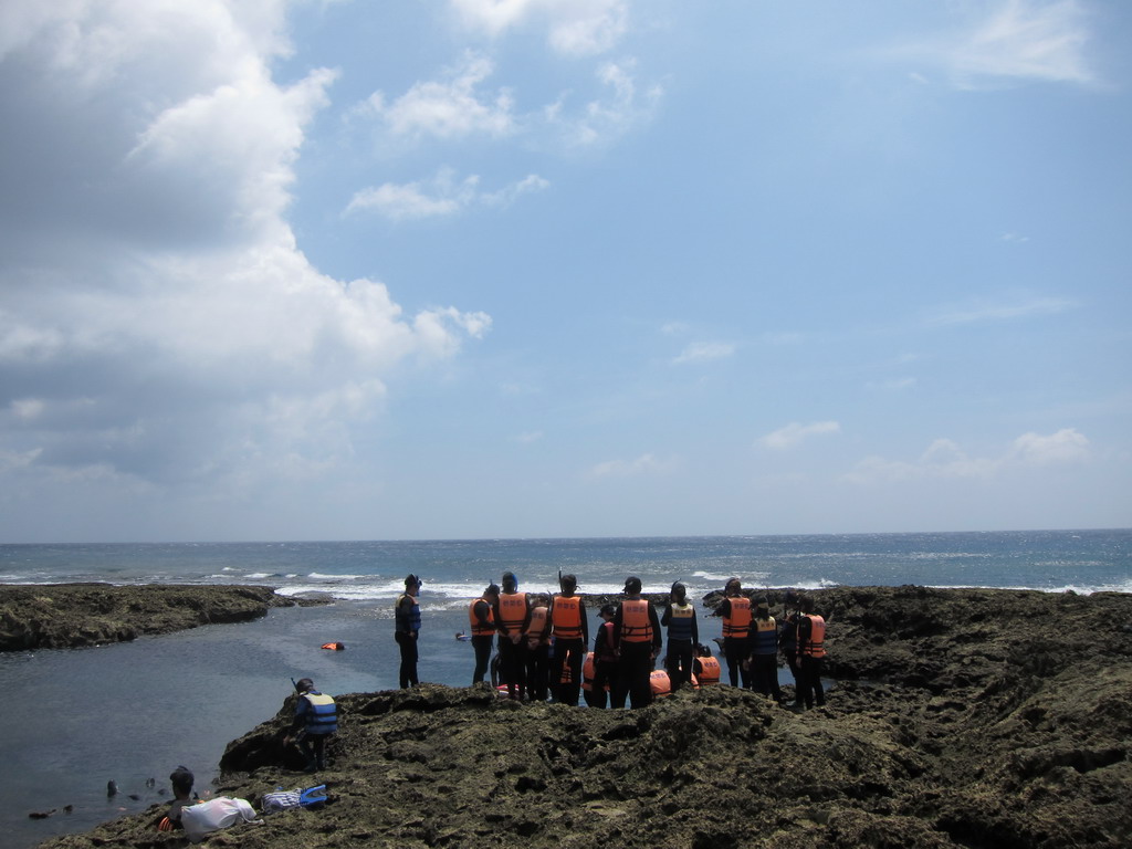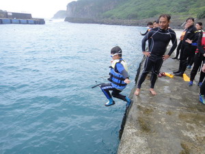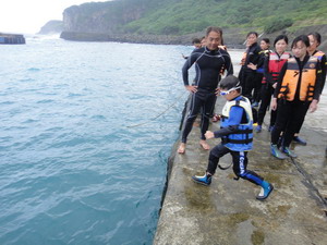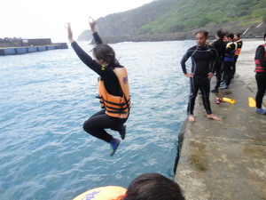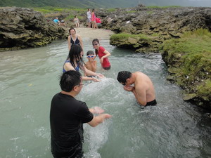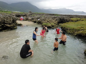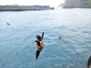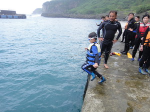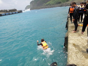 大夥不知不覺在潮池中玩到近12點,隨後教練帶著我們到龍門港跳水