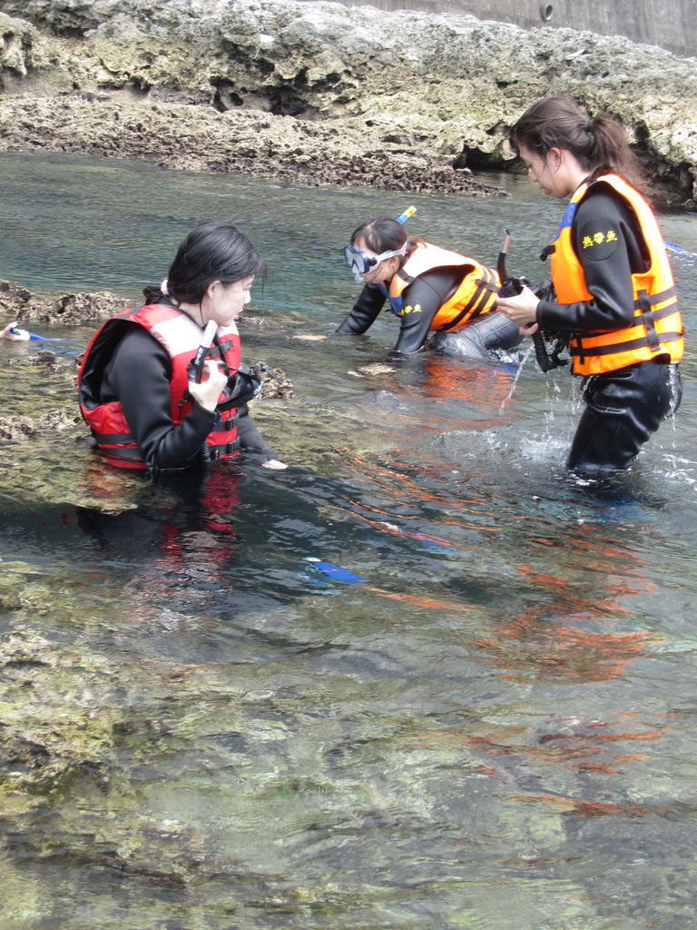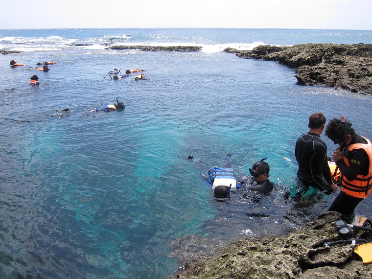 一行人由教練帶到潮池邊,景象又讓我吃了一驚,潮池的水清澈透明,似乎深不可及
