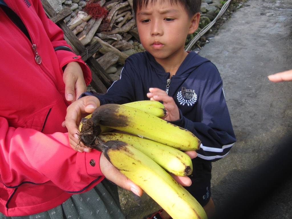 用餐結束前,一位當地人送來一大堆香蕉,老闆大方的分送我們當飯後水果