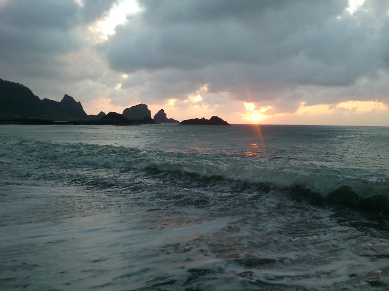 5:33 半個太陽從東清灣海面昇起,旅遊的第三天,終於看到陽光