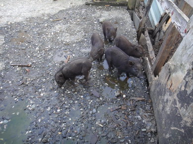 蘭嶼的豬很可愛,雖然被關在豬圈裡,但總會有個開口讓它們自由跑到馬路上來