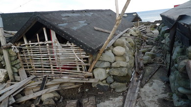農會整個倒了,船隻全都被風浪吹上岸,環島公路上到處是滾落的大石