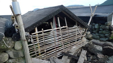 這邊也能看到一些地下屋,不過多半已經用來當倉庫,收納一些雜物或者拿來放拼板舟,有些變成豬舍