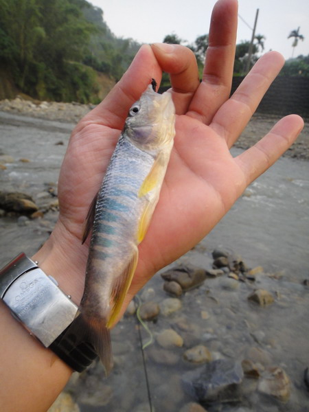放眼望去,完全無魚蹤,就在一處小水溏,怎麼丟怎麼咬,兩人連起近十隻