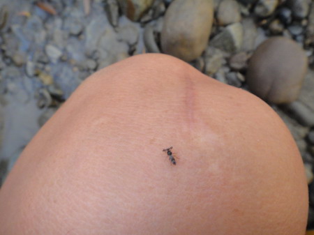 照片中這隻頭長角的蒼蠅,當時有5隻停在我腳上