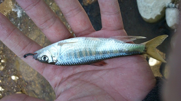最後,補一張在旱溪中的馬口,開始釣魚以來,第一次在旱溪遇到它